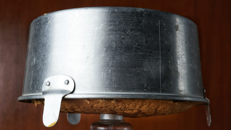 Cooking for Engineers points out one common mistake that can consign your angel food cake to kitchen hell, and that's introducing any fat into the recipe. If you didn't cleanly separate the egg yolks from the whites, for example, the whites won't beat up as stiff as you need them to be, resulting in a "soupy mess" rather than a divine angel food cake batter. Similarly, greasing the pan before you pour the batter in puts fat where you don't want it (anywhere near an angel food cake before it's baked) and the cake won't ascend to the heavenly heights you aspire to. But once that cake is baked, there's still another potential transgression that could imperil your angel food cake.