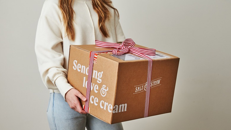 Salt & Straw's name is a shout-out to old-school ice cream making, according to the Oregon-based handmade ice cream purveyor. The company name speaks to the way the sweet treat was traditionally made, where the salted ice water in which the bucket of sweet cream was churned allowed it to reach colder-than-freezing temperatures (via McGill). And straw was used to pack ice cream to keep it cold in the days before refrigeration, per Twinkl. But there's nothing old school about the direction in which Salt & Straw is currently taking ice cream.