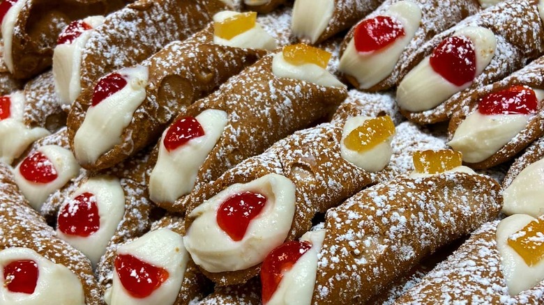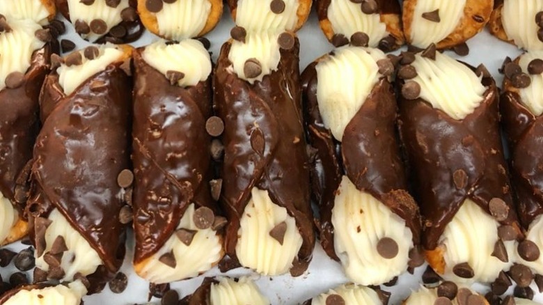 The bakery offers traditional cannoli, chocolate-covered cannoli, and mini cannoli (both classic and chocolate-covered shells). Each cannoli features the bakery's signature chocolate chip-studded sweet ricotta cream alongside candied fruits. There's a sense of euphoria when biting into the cannoli that you have to experience to believe. Indeed, one taste, and you'll be exclaiming, "Holy Cannoli."