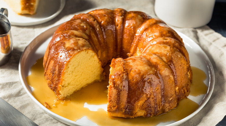 Traditionally, brown butter is made by heating butter in a skillet over medium heat until small brown flecks form. But if you're in a time crunch, you can still enjoy the magic of brown butter in your cake by making it in the microwave. You'll need to place the butter in a covered, microwave-safe container and nuke it for a minimum of three minutes. You should check the butter at 30-second intervals to ensure it doesn't burn. When the butter starts to emit a nutty aroma, it is ready for you to remove from the microwave and add to your cake.