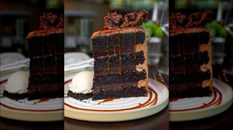 It's smoky, savory, the staple of breakfasts across America — and it can be the ingredient you add to cake to make it all the more extravagant. It's bacon! The salty, meaty strips can add an element of saltiness that contrasts the sweetness in vanilla and apple cake. Take a cue from upscale fried chicken chain Yardbird and bring bourbon and chocolate into the mix. But our personal favorite is the classic pairing of bacon and maple. You can make candied bacon to go on top of cakes (or cupcakes) or go the direct route of adding cooked bacon to your cake base before you put it in the oven. To infuse more flavor, use the leftover bacon grease and sugar to candy pecans or walnuts.