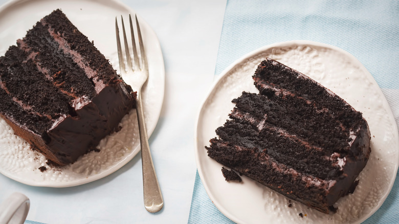 Mashed potatoes — in a cake? Although you may think of the humble spud as more of a Thanksgiving side dish, mashed potatoes can elevate your chocolate cake by locking in moisture. This is because, on a molecular level, potatoes contain about 80% water; the rest is potato starch — another common ingredient you'll see in baked goods like brownies and cakes. Potato starch is an excellent ingredient to bind the ingredients in a cake and can be especially useful for folks working with vegan or egg-free cake recipes. Using fluffy mashed potatoes offers the benefits of both added moisture and binding.