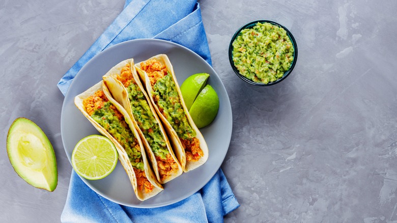 Seeing as how avocados are native to Mexico and their history there dates back around 10,000 years (via Avocados from Mexico), it certainly makes sense that the fruits would form the basis of one of the most classically Mexican condiments of all time: guacamole. Found at most any taco joint alongside the selection of salsas, whether you're in Mexico or around the world, guacamole, at its most basic, contains plenty of fresh lime juice and salt, plus at least a little chopped onion, garlic, and cilantro (via Insider).