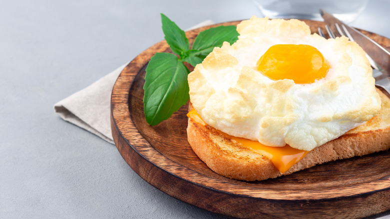 If you're wondering how the adorable edible tastes, it depends on any additions that you choose to add. Eggs whites aren't known for their savouriness so expect that a plain cloud egg won't taste like much at all, except yolk. While the trendiness might come from the cheerful appearance, Vogue asserts that the frothy egg whites make an excellent stand-in for an actual biscuit, perfect for those avoiding carbs or gluten. Add anything you like to your egg whites but be aware that the more you put in there, the less volume you'll see. For ultra-fluffy clouds, bake the whites unflavored, then garnish to your liking.