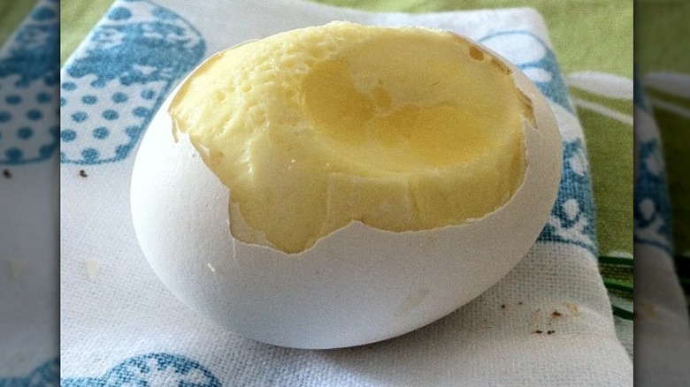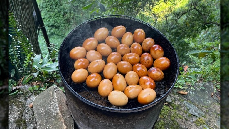 Roasted eggs might be familiar to some of you, especially if you observe Passover. The traditional seder plate contains a roasted egg called Beitzah, symbolizing the rebirth of spring, the ultimate cycle of life, and is a reminder of sacrificial offerings (via My Jewish Learning). Roasted eggs are also a popular Korean street food and as an appetizer in Mauritius, as well as in many other cultures. If you're looking for something different and delicious, you might want to try roasting them. A roasted egg takes a little more prep than other eggs on this list — you need to know that a raw egg will explode if you try popping it over a flame.
