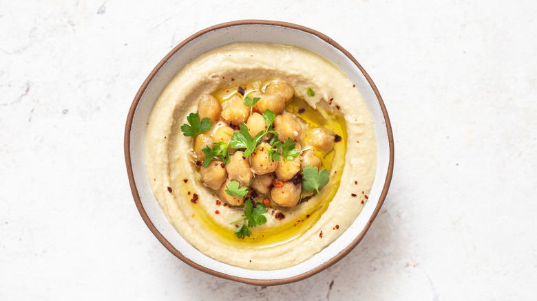 Hummus is one of those delicious dips you can readily find at any grocery store, but we, personally, think a homemade simple creamy hummus is the way to go, and it couldn't be any simpler. In a food processor, add a can of chickpeas, some liquid from the can, a little tahini, juice from half a lemon, two tablespoons of olive oil, and a quarter teaspoon of salt. Get it all mixed and combine it in the food processor for roughly a minute. To use hummus as the substitute for mayo, add it in for an equivalent amount. After you add it to your tuna salad, give your mixture a taste. If it needs more tartness, consider adding more lemon juice and a little salt. Like anything else, you can tweak the hummus recipe to your taste. Plus, with the extras, you can dip fresh veggies or pita chips for a nice side dish.