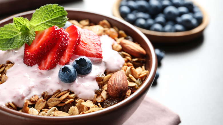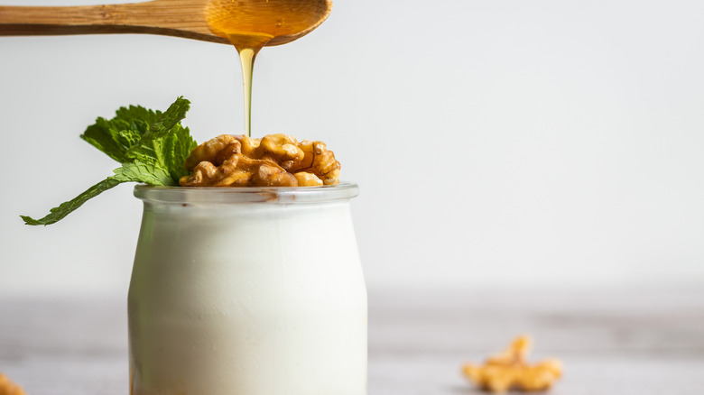 According to Thrillist, the flavor of Australian yogurt is slightly unique since it's flavored with honey — Noosa, at least. That's also assuming you're getting a flavored yogurt — plain Australian yogurt will have the classic, tart and sour flavor Greek and traditional yogurts are known for. The difference lies in the texture — if there were a scale of thickness and creaminess for various yogurts, traditional yogurt would be on the bottom, followed by Australian yogurt, then Greek, and finally Icelandic skyr.