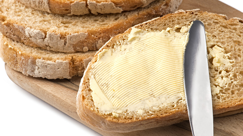 Even that two-day time period won't be exact, however. The Kitchn notes that salted butter will last longer on the counter than unsalted. Keeping it away from air and light by using a butter dish or other container can also extend the amount of time it can safely spend out, although two days is still the best guiding principle if you're unsure. If your butter goes rancid, you should be able to tell pretty easily, as it will have a noticeably bad smell. Follow those simple precautions, and your softened butter should stay safe, and then it will be clear to put back in the fridge whenever you want.