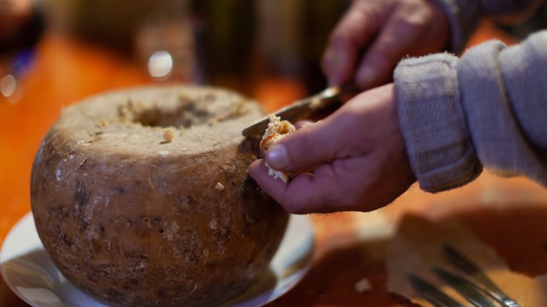Casu marzu translates to rotten cheese, according to Britannica. But if it's rotten, why does it have such a solid fanbase? We speculate it comes down to a twist on the old adage "Beauty is in the eye of the beholder." If you like strong semi-soft cheeses like Gorgonzola, you may discover casu marzu is right up your alley. Britannica describes it as having "a very soft melting texture." To eat a like local, spread a bit of cheese on a piece of pane carasau, the same flatbread Sardinian shepherds once carried with them into the fields.