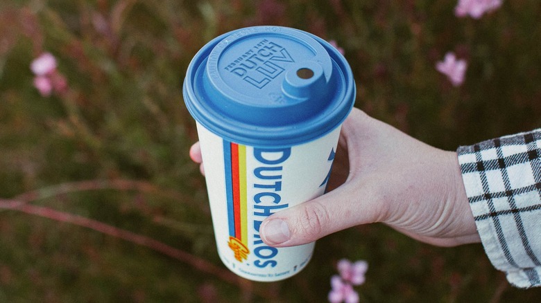 The floral White Chocolate Lavender flavor will be available as a cold brew, breve, or Dutch freeze (a blended coffee drink) at all Dutch Bros locations through March, per an announcement. Every variation of the fan favorite flavor will feature Dutch Bros' signature Soft Top. If you want a dairy-free version, Dutch Bros suggests requesting an oat milk latte. And for those looking for a coffee-free beverage that still has the lavender flavor, Dutch Bros has a Strawberry Lavender lemonade, tea, or frost (which is similar to a milkshake).