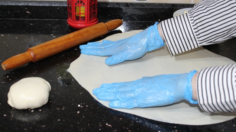 While the standard ingredients are simple, fiteer can be tricky to master. Made by folding layers of ghee into a simple dough, fiteer is essentially a form of lamination. As The Kitchn explains, laminated dough is formed by repeatedly folding thin layers of butter into sheets of dough to create layers of thin, flaky pastry. When the dough is baked in a piping-hot oven, the water evaporates, puffing up the pastry. This is what gives puff pastry and croissants their signature flake — and it's one reason why they're notoriously difficult to perfect.