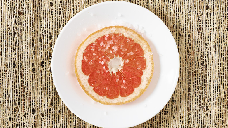 Not everyone's a grapefruit fan, but 56% of Americans polled by YouGovAmerica say they are. Still, many like to sprinkle a sweetener over their open-faced grapefruit halves before slicing and spooning the bittersweet citrus fruit, via Harvest To Table. And by sweetener, we generally mean sugar, which NPR suggests has always been the most highly subscribed grapefruit topping. However, it turns out that salt is also a viable option; in fact, salt arguably tames the bitterness of grapefruit even better than sugar does.
