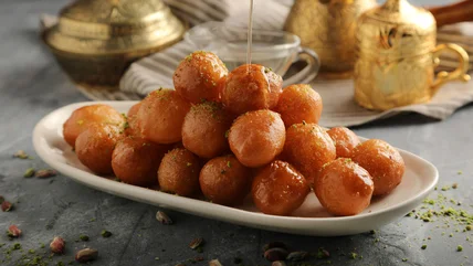 Luqaimat is a Saudi Arabian dish that translates to "small bites" in Arabic. These small balls are made from fried dough sweetened with date syrup. You are most likely to find lunqaimat in Dubai during Ramadan, but some restaurants have added dessert to their menu year-round (via the Tenement Museum). According to the National News, luqaimat is unlike other types of dough because it is leavened with yogurt instead of butter or shortening. Luqaimat is often served with a sesame seed garnish or cardamom-and-saffron-infused syrup.