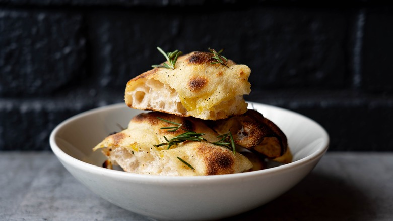 Focaccia recipes are notoriously simple to make and rarely call for any real kneading beyond the initial mixing of ingredients. Luckily for intrepid pizza bakers, focaccia works famously well as a pizza dough. The finished product won't be like some Neapolitan-style pizzas or even thin-crust pies, but more like thick, sheet-pan style pizzas. This style of pizza is sometimes called "grandma" style, as it is a favorite method amongst Italian grandmothers and is easy to make at home.