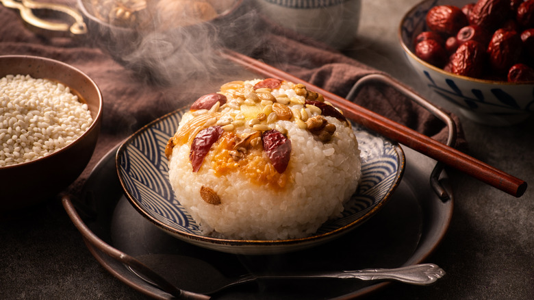 Sticky rice may be an acquired taste, but if you make it correctly, the dish is rich, comforting, and a joy to eat. Still on the fence? Eight treasure rice is the undisputed star of all unique types of sticky rice; it may not contain treasures of gold, silver, or jewels, but it does have an abundance of mouth-watering ingredients. In Chinese culture, the number eight holds particular significance. In regional dialects, the pronunciation of eight sounds very similar to either fortune or prosper, which has led to some extreme examples of items involving the number eight selling for hundreds of dollars, per Lantern Club. Hence, it's no wonder that eight treasure rice is perceived to be tremendously fortuitous for Chinese New Year.