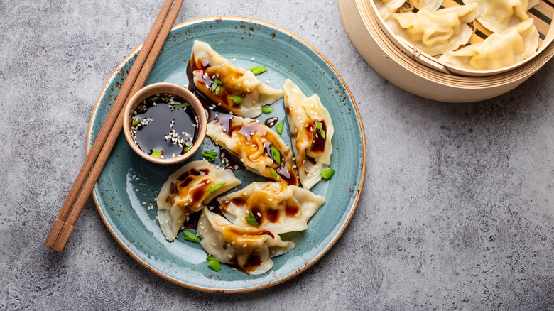 Although there are many different types of Chinese dumplings, jiǎozi (light and soft steamed dumplings) are guaranteed to be present at every dinner table in the Northern Chinese provinces. Per Asian Inspirations, the tradition of eating dumplings to celebrate the New Year dates back to the Ming dynasty, between the 12th and 15th centuries. Everyone ate dumplings within the last hour of the old year and the first hour of the new year. Within one of the dumplings hid a silver coin; the person to find this coin would have blessings of luck for the rest of the year. In the contemporary age, you're likely to find coins, peanuts, Chinese red dates, and sweet candy hidden within the dumplings. Each is associated with a particular blessing: coins with wealth; peanuts with long, healthy life; Chinese red dates with fertility; and sweet candy with happiness, (via Sun-Bird Seasonings).