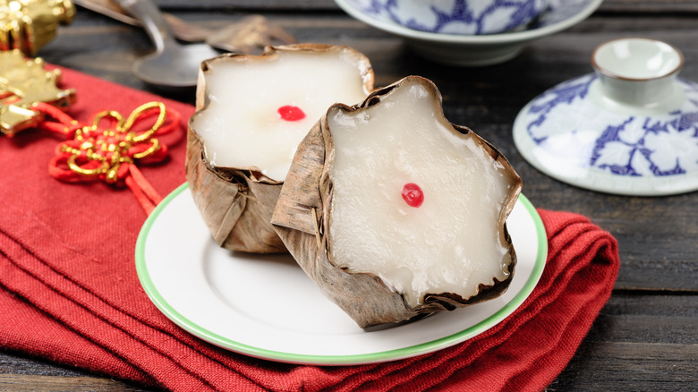 Due to the relatively small number of syllables in modern Chinese languages, homophones — characters that sound the same but have different meanings — are common. Nián gāo means sticky cake and "higher year," (via the Journal of Pragmatics), which symbolizes children's growth, higher income, and better times to come, explains Inquirer.net. The source continues by telling the story of how nián gāo was named: A clever villager named Gāo managed to outsmart a monster named Nián who intended to eat the people. Gāo instructed them to make rice cakes and place them outside their doors. The monster ate the rice cakes and left the people in peace, hence nián gāo.