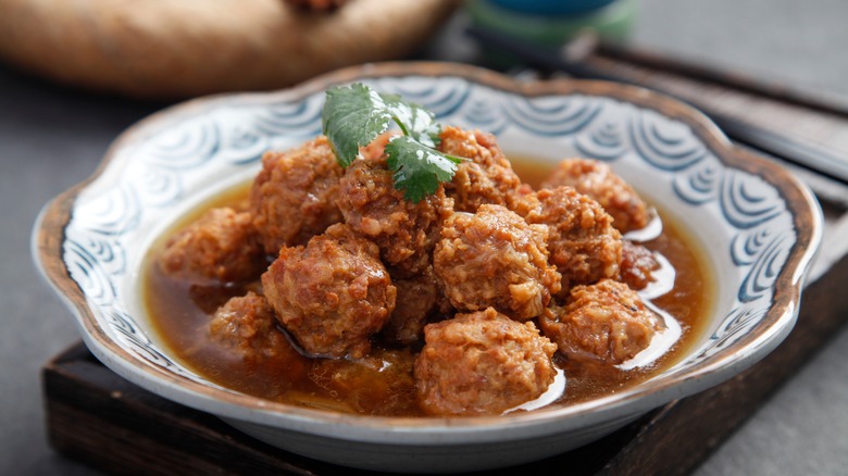 Despite the fantastical name, lion's head meatballs are not too dissimilar from other cultural meatball recipes, like Middle Eastern kofta or Swedish köttbullar. The South China Morning Post dates the history of lion's head meatballs to the Sui dynasty. Legend tells that Emperor Yang instructed the palace chef to construct a dish that would remind him of his travels in the Jiangsu province, where the Emperor had fallen in love with sunflowers. In an innovative move, the chef created deep-fried meatballs that were golden, just like sunflowers. The dish received its outlandish name a few decades later in the Tang dynasty. After winning an intensely fought battle, the Governor was praised for being "as brave as a lion" and hosted a banquet to celebrate the victory. One of the guests at the banquet commented that they should name one of the dishes after his heroics, and henceforth, the meatballs were known as "lions head meatballs." They remained popular as a celebratory dish, thanks to the complex preparation.