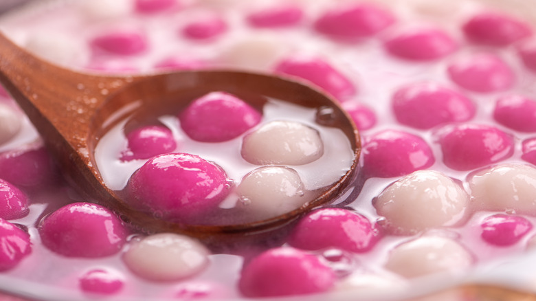 You'll find the glutinous rice balls served in a thin, sweet broth and, per Chinese superstition, you should invariably distribute the sweets in even numbers — excluding four, which has an unfortunate association with death, (via Vice).