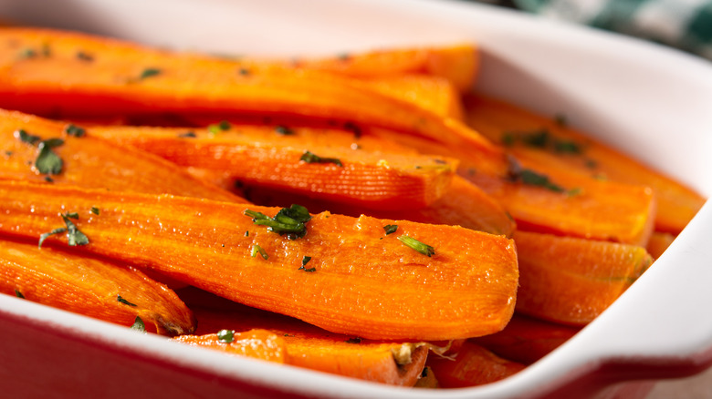 The appeal of glazed vegetables is that they sit somewhere between a roasted vegetable and a steamed vegetable. Roasted vegetables tend to have caramelized bits due to the high heat of the oven, while glazed vegetables cook in a sauce made of sugar or juice, per Epicurious. A common rookie mistake is to add a lot of water or liquid sauce when you start cooking your vegetables. More often than not, people are overly generous with the water or juice they use to cook their vegetables, which can give them a watery and mushy finish.