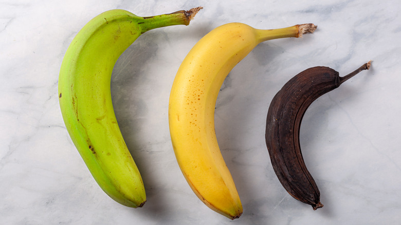 As a banana ripens and changes from green to yellow and finally turns brown, starches are broken down into sugar by an enzyme known as amylase. According to a research article published in the Global Journal of Nutrition & Food Science in 2022, this starch-to-sugar conversion is responsible for softening the fruit and increasing its sweetness as it ripens. This is why a brown-spotted banana tastes more like dessert than a green-tipped one and why overripe bananas are best suited for sweetening baked goods. This same amylase enzyme is present in our saliva and has an important job of beginning the breakdown of carbohydrates into glucose in our mouths, per Alton Memorial Hospital.