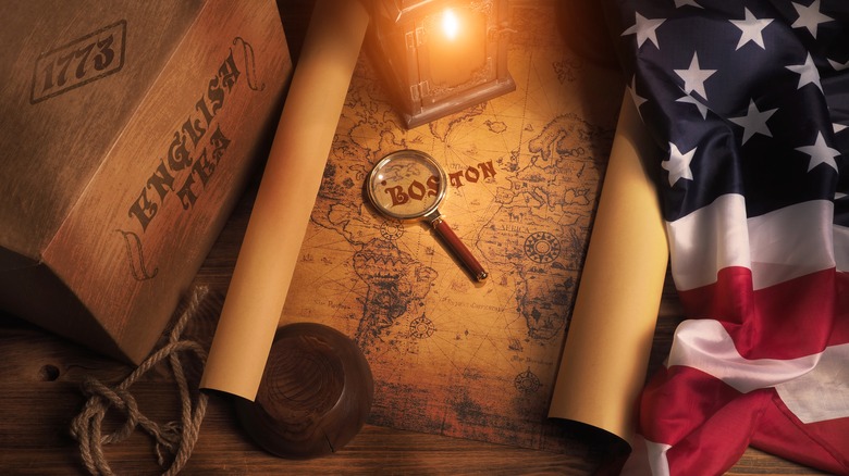 Boston's Green Dragon Tavern was a Union Street institution from its founding in 1697 to its eventual closure in 1832, according to "Old Boston Taverns and Tavern Clubs," an old-timey ode to the city's drinking establishments by author Samuel Adams Drake. This tavern was an exceedingly busy place during the 18th century, per Green Dragon Freemasons. Several noteworthy organizations congregated there regularly, including freemasons and the Boston Caucus. But the most famous of all was the Sons of Liberty. This group is credited with masterminding the Boston Tea Party, recalls History. It was one of the most important precipitating events in the leadup to the American Revolution, and it was allegedly devised at the Green Dragon Tavern.