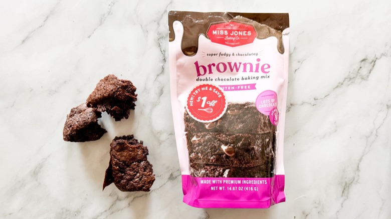 I had to open up the competition to pouched brownie mixes as well as boxed ones just because of this one brand. Miss Jones' gluten-free double chocolate baking mix was priced much higher than the other brands, though it does boast that it's made with "premium ingredients," to which I say: It's a brownie mix. How "premium" can it get?