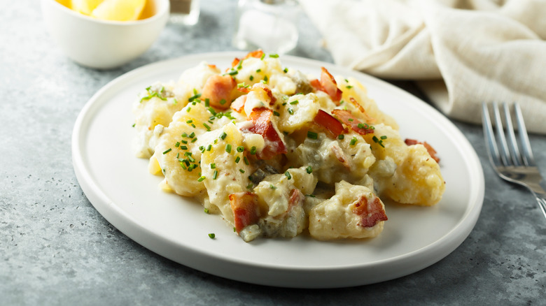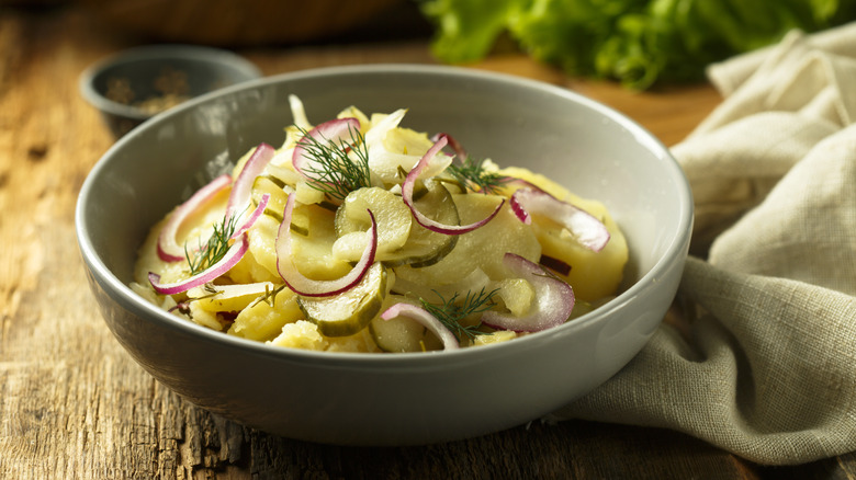 Bacon is perhaps one of the most universally loved meats in America. It truly is almost everyone's kryptonite, so why not add it as an ingredient to elevate potato salad? In fact, what makes German potato salad different from the American version is the addition of bacon, and bacon grease often combined with mustard, red onions, and pickles.