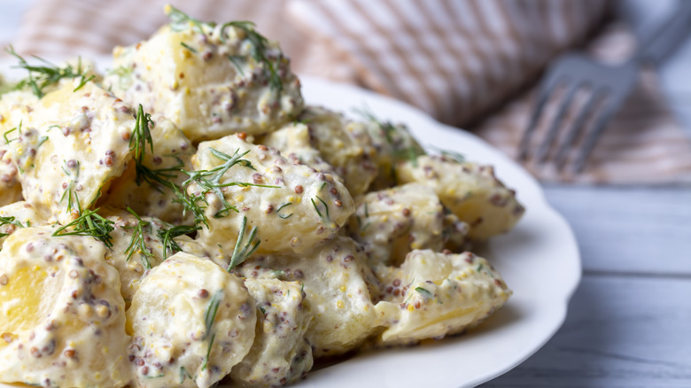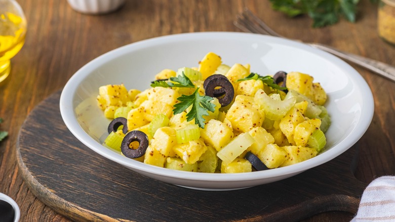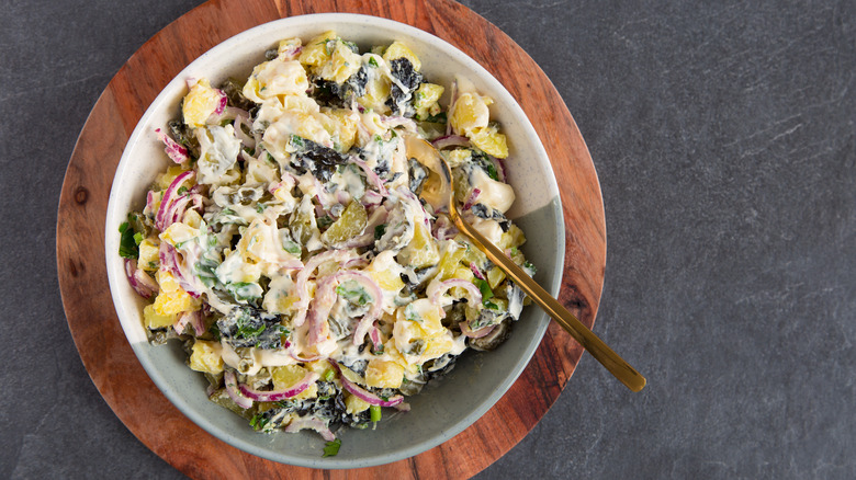That's why we've compiled the absolute best ingredients to elevate potato salad, so you can sample each and every one of them for yourself. You'll never question what to bring to a potluck once you get elbow-deep into the world of potato salads. From German to All-American, it may take you a lifetime to try them all, but it will be well worth it. Enjoy these additions solo or mix and match to land on the potato salad that best suits you.