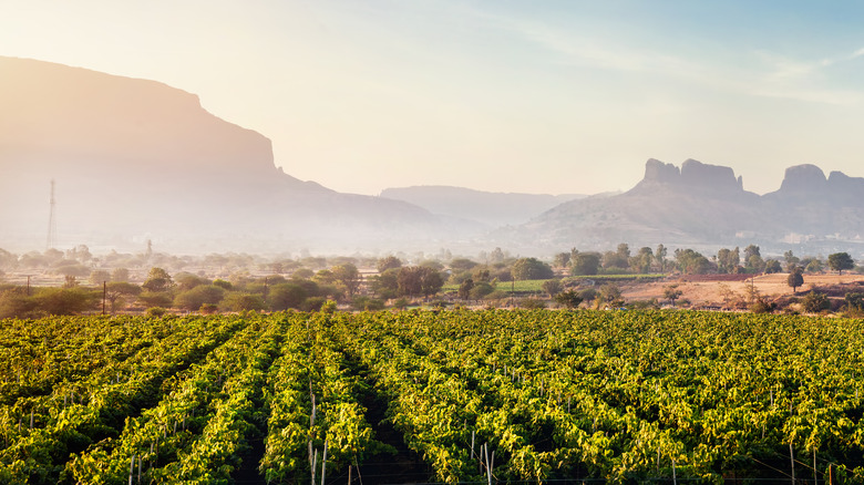 India's climate and terroir might seem more suitable for growing spice crops, coffee, sugar, and tropical fruits like guavas and papayas, but the South Asian country is enormous and has quite a substantial amount of agricultural diversity. According to the Wine & Spirit Education Trust, wine has been produced within the borders of what we today consider India since the 13th century B.C. That means that even though many might not see India as a formidable wine region, it is certainly one of the oldest wine-making countries in the world. However, the modern Indian wine industry didn't have the opportunity to kick off until the 1980s. Since then, it has been expanding within the country and is notable for growing and harvesting its fruit during the cold season.