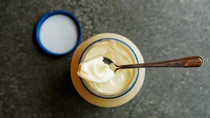 Anyone following a vegan diet may already be familiar with aquafaba, the water left over after draining a can of beans like chickpeas. When whipped vigorously like egg whites, this liquid turns into an ingredient you can swap for eggs when baking. Slowly adding oil to the beaten liquid transforms it into a similar taste and texture to mayonnaise, making it a suitable substitution in any recipe.
