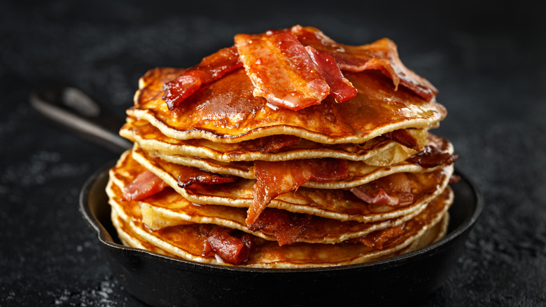 Regardless of how you like to add savory bacon to your pancakes, you should always make sure to cook it beforehand. Although a little bit of grease may remind you of a diner pancake, too much will overwhelm the flavors of the pancake batter and can potentially make you sick if the bacon doesn't cook fully. Plus, crispy bacon is undoubtedly the best kind of bacon there is.