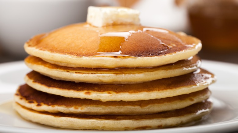 Pancakes are one of those quintessential breakfast foods that will always be a part of American diner culture, especially when served with scrambled eggs and a side of crispy bacon. According to National Geographic, the practice of heating a blend of water and flour goes back 30,000 years, but a version of the pancake we know today can be traced back to ancient Greek and Roman times. The pancake breakfast emerged in the 12th century as a way for people to use up leftover dairy products before Lent. By the 1800s, bakers started experimenting with a whole host of ingredients to craft the fluffiest and softest pancakes in history with the help of ingredients like baking soda, milk, and cream (via Betty Crocker).