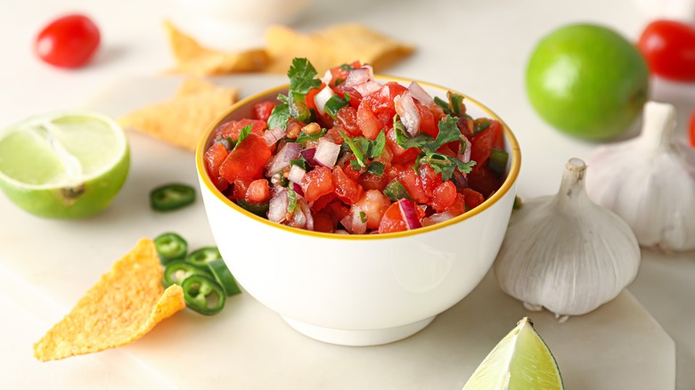 Sometimes, you just need to add some freshness and zing to a dish, and for that, pico de gallo is perfect. A tomato-heavy chunky salsa with onions and herbs is a fantastic way to add a ton of flavor to a bland dish like a baked potato. But because this is somewhat of an unconventional pairing, it won't be to everyone's liking. Therefore, it's important to ensure that your other toppings pair well with the pico de gallo. While black beans might provide some balance, the addition of diced ham won't quite fit in this context.
