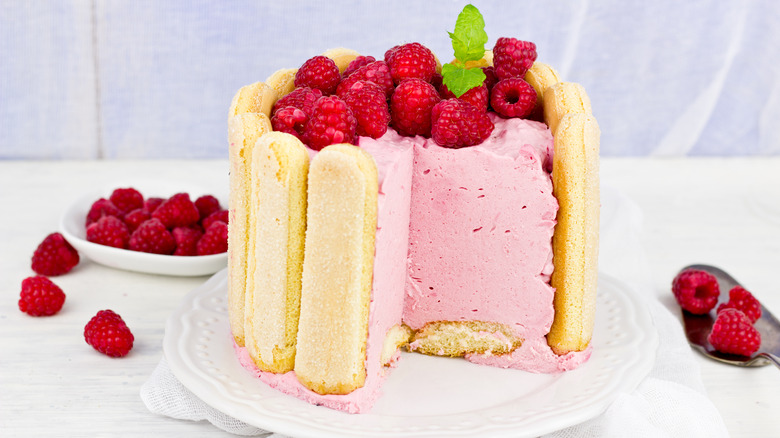 With numerous styles of the elegant, molded French dessert, Charlotte cakes actually comprise their own category of sweet treats, according to Masterclass. While some are baked, others are chilled until set and served cold. The origin of the name is disputed, but many believe the Charlotte Russe cake, the predecessor of the Charlotte Royale and other elegant cakes, takes its name from Queen Charlotte, the sister-in-law of Czar Alexander I (hence "russe," which means Russian in French) and the wife of King George III of Great Britain (via What's Cooking America). A late 18th-century version of the Charlotte cake featured thick apple compote baked into a mold lined with buttered bread as a way to use stale pieces and leftovers and was known as an apple Charlotte.