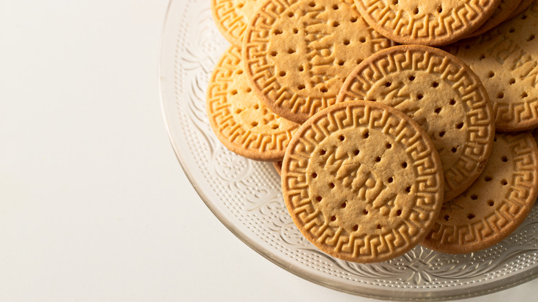 Created in London in 1874 to commemorate the wedding of Maria Alexandrovna, Russia's Grand Duchess, to Queen Victoria's second son, the Duke of Edinburgh, the Marie biscuit has made its way into hearts and pantries all over the world. In the late 19th century, sweet biscuits, called fancies, were only produced locally and on a small scale (via India Times). Biscuits referred to the hard, plain rations meant to last on lengthy voyages by ship. New technologies such as airtight containers allowed snacks to be transported farther, and as the British empire spread, so did their penchant for biscuit breaks. According to Biscuit People, the Marie biscuit, originally known as Maria, became popular throughout Europe, especially in Spain, where it is thought to have symbolized economic recovery after the country's civil war.