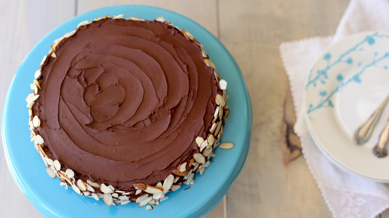 Imaginative French chefs dreamed of dark, rich, and opulent desserts inspired by this mythical figure. Unlike other French cakes, the Reine de Saba, or Queen of Sheba cake, should be moist and baked for a relatively short time with no need for filling (via Washington Post). While many versions exist of this queen's cake, the most distinctive is finished with a glossy chocolate glaze and shaved almonds adorning its edges.