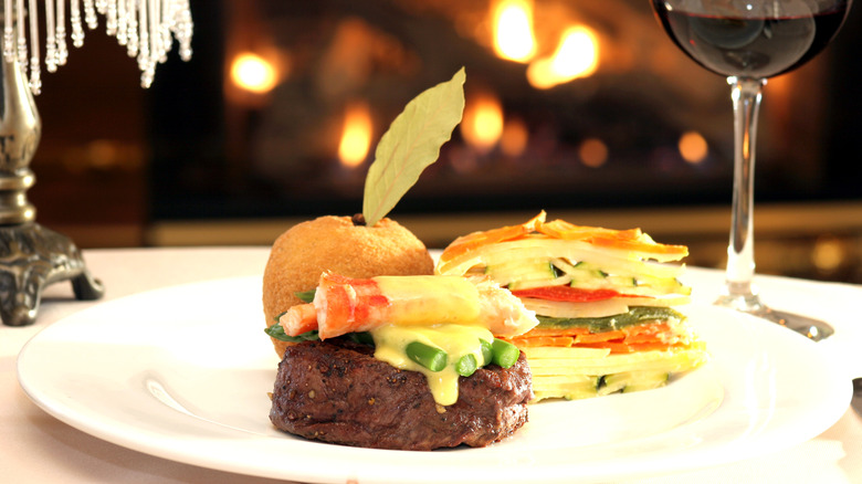 Like many dishes named after royalty, steak Oscar is renowned for its opulence. Originally veal Oscar, sometimes spelled Oskar, named after King Oscar II of Sweden and Norway, Oscar-style steak showcases the notorious decadence of the royal gourmand. Given the king's reputation for late-night dining, a chef combined an array of his favorite indulgences, including veal, crayfish, bearnaise sauce, and blanched white asparagus spears to create the luxurious dish (via Orlando Sentinel). Modern versions of the dish are often served over steak rather than veal with lump crab or lobster meat instead of crayfish.