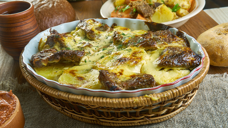 It is somewhat ironic that one of the most enduring veal dishes takes its name from a notoriously veal-hating Russian royal. The abundantly sauced and seasoned dish, veal Orloff, sometimes spelled Orlov, is attributed to Urbain Dubois, a highly-regarded French chef of the 19th century employed by Prince Nikolai Alexeivich Orlov, who had been a Russian ambassador to France (via American History). Similar dishes known as French-style meat have been popularized in Russia, generally utilizing cheaper cuts of meat layered with mayonnaise and sliced potatoes.