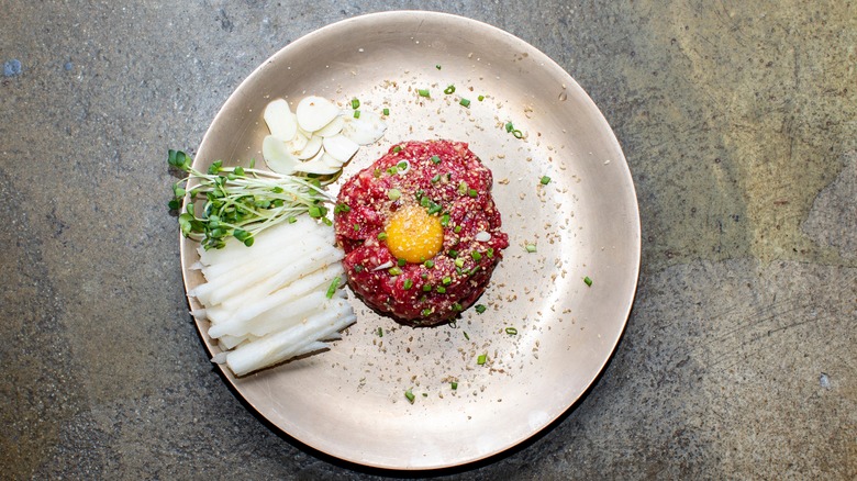 Yukhoe, however, was not available to everyone. During this time, cows were forbidden to kill for anyone outside of the royal family, who enjoyed this luxurious dish on special occasions and at royal banquets (via Michelin). Until the early 20th century, beef butchery was monitored by the government before factories and beef markets were later established in the regions around Seoul and Jinju, where yukhoe became part of the local cuisine.