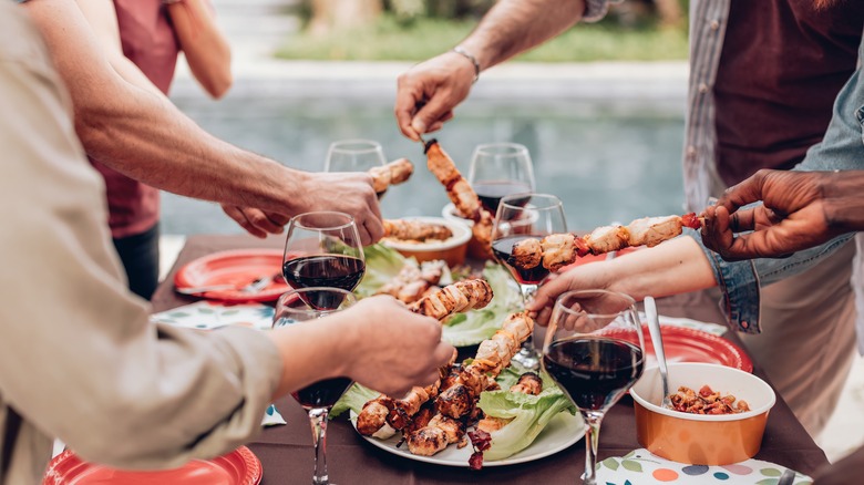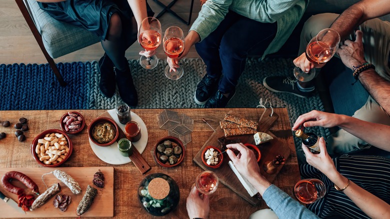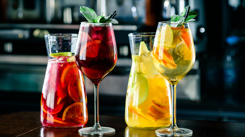 Given the long association between these tiny-portioned meals and alcohol, drinking has naturally been a part of the experience. Tapas restaurants in Spain and abroad will likely have a good list of wine, sherry, and cocktails like sangria. Before you order any food, make sure to place your drink order if you are partaking. Not only could these drinks pair well with your food, but you may also benefit from your patience. In Spain, free tapas were once widely expected with alcohol purchases (via El Meson). For this reason, it is a good idea to start by ordering a drink and wait to see if you get a complimentary bite. Just don't expect it everywhere. This age-old practice is not as common as it once was and can vary from region to region. It's a nice gesture, but do not demand it. If you notice that no one is getting free tapas, proceed to order your food.
