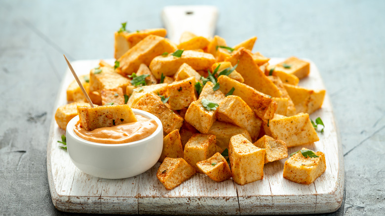 Another tapas origin story involves a completely different King Alfonso, who ruled in the early 20th century. This legend claims that a waiter covered King Alfonso XIII's glass of sherry with a sausage to prevent sand from blowing into it. Barcelona Home explains that the culinary term "tapas" comes from the Spanish verb tapar ("to cover") or the noun tapa ("lid"). These little plates of food can also act as a lid to protect your drink from dirt, flies, and other unwelcome pests.