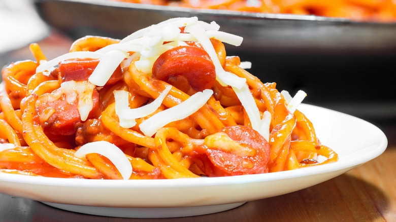 Another unique aspect of this dish is its inclusion of hot dog bits. Like Spam, Hungry Huy notes that processed meats, such as hot dogs, were introduced to the country during the American occupation. Filipinos were quick to include this meat in all kinds of dishes, including in this bolognese-esque sauce.