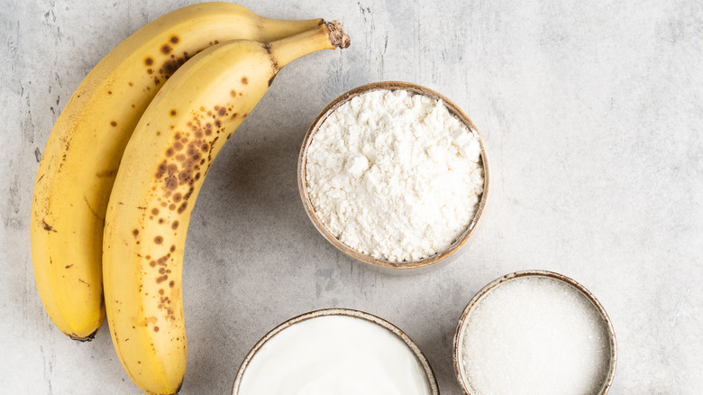 Yet if you'd rather keep your ingredients few and simple, you can play around with different banana bread iterations. Per The New York Times, the versatile bread allows for plenty of experimentation in both texture and flavor, using common ingredients — bananas, flour, fat, sweetener, and a leavening agent — as a starting point.