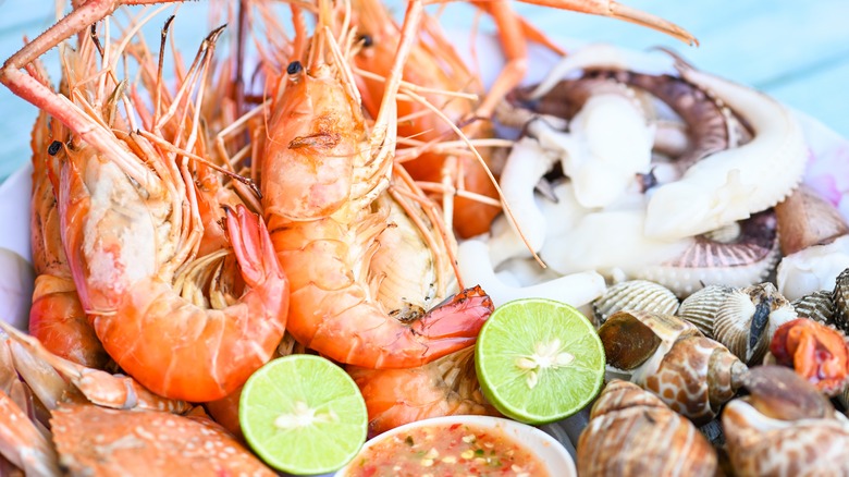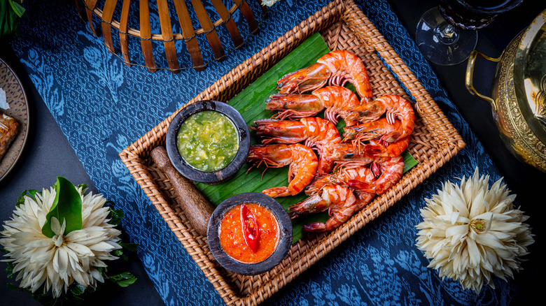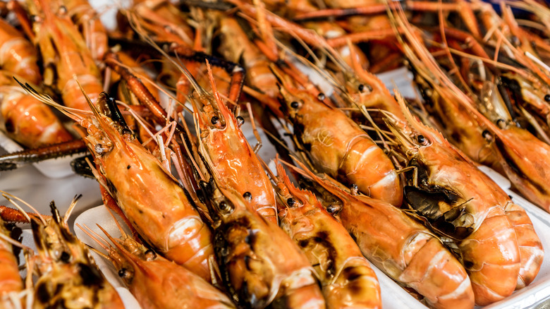It's also often the case that regular shrimp are more readily available, and as such more affordable on the whole. If you live on the West coast, you have access to fresh shrimp and spot prawns, so the price will likely depend on seasonality. Shrimp are also smaller on the whole than spot prawns. Another visual distinction between the two are claws — spot prawns have claws on their front three pairs of legs, whereas the first two pairs of legs on shrimp are clawed, notes King's Seafood Co. They both have 10 pairs of legs, though.