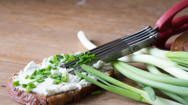 But these aren't the only reasons why herb scissors are a handy gadget. It can be difficult to easily cut herbs without bruising them. If you are overzealous with a knife when cutting up fresh, tender herbs, they can lose the aromatic and flavorful properties that make them so delicious in your recipes, per MasterClass. Herb scissors are specifically designed to help you avoid this.