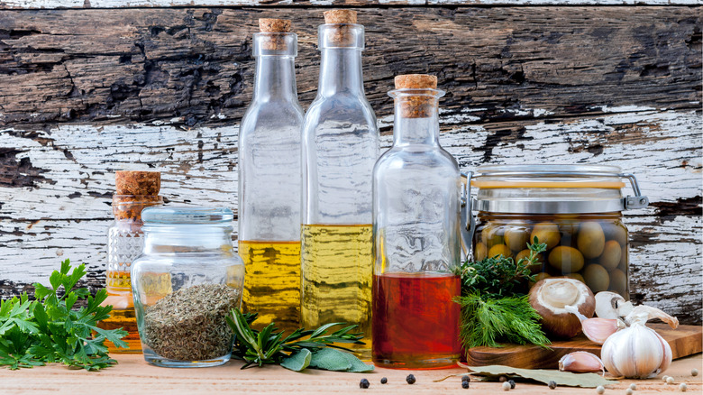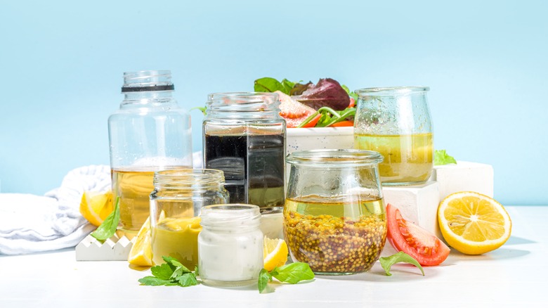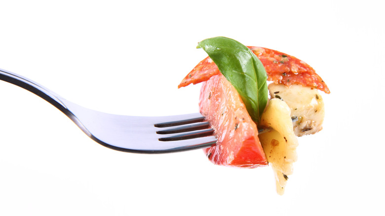 Bringing a touch of sweetness to pasta salad can create a delightful contrast. Add honey or maple syrup to a classic vinaigrette for a fresh twist on this classic dressing. Also considered cubed fruit like mangoes or strawberries. If you're looking for a spicy kick, tangy pepperoncini peppers are a great candidate. Just adjust the quantity to dial the heat up or down according to taste. One ingredient that will change your pasta salad forever is pickle juice. Food stylist Kelly Paige remarked that it "adds a brightness to dishes with a pop of acidity, sourness, and tang. Think of it as a one-stop shop for flavor" (via Today).