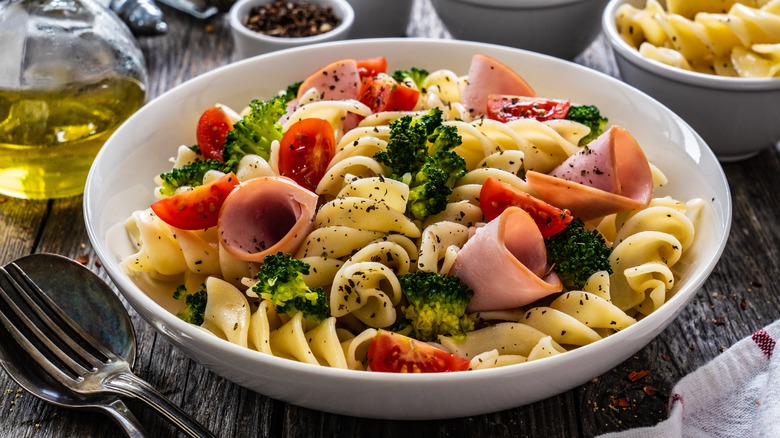 Prioritize comforting ingredients such as chicken, beans, and cheese for your warm pasta salad. We also recommend taking advantage of seasonal produce — a blend of roasted fall vegetables is a great addition. Unlike their cold counterparts, warm pasta salads are best served immediately after the ingredients are mixed with piping hot drained pasta. If you want to switch up your sides roster this holiday season, you can go wrong with a warm pasta salad.