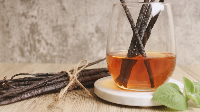 And let's face it, it's not only for baking. According to Honest Food Talks, vanilla extract has several other skills. If you're needing an extra browning on veggies that you're stir-frying, or onions that you're caramelizing for soup, adding a splash of vanilla will do the trick. Furthermore, adding a few drops of vanilla extract into your warm beverages such as coffee, hot chocolate, or tea, or even into your boozy cocktails, can elevate and add sweetness. However, for vanilla extract to be so essential and so versatile, the bottled stuff at the store is quite pricey. There's got to be a way to make it at home.