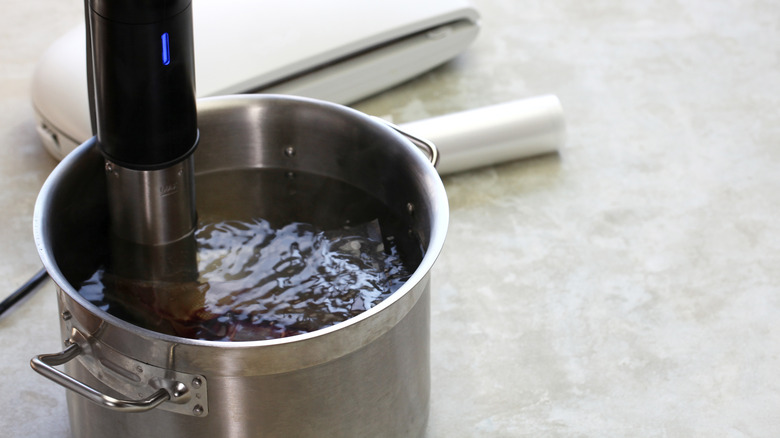When making your own vanilla, temperature plays a huge role in how it turns out. If your jar of liquor-soaked vanilla pods are held at too low of a temperature, the flavor won't be extracted enough. This is why keeping it at room temperature doesn't quite suffice. On the other hand, if it is held at a temperature too high, the flavor of the vanilla is likely to alter and diminish. The process and procedures that vanilla extract companies undergo have long been tested to yield consistent results, which is why it is deemed much harder to re-create at home (via Simply Recipes). However, if you own a sous-vide, this might be the ticket to extracting the most flavor, as its biggest skill is maintaining a water bath temperature for longer periods of time.